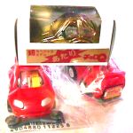スープラレッドのコインホルダー後ろの”あたりくじシール”を剥がして”あたり”が出れば景品として 超スペシャルモデルあたりチョロQどっ金トレノ が1/8の確率で当たる! ハズレでもローラーバンパー付きで350円だからあまり損した気分にならないのがいいね! |